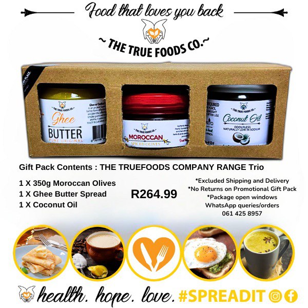 What is in the Box : Trio 320g Moroccan Olives + 200ml Coconut Oil Glass + 200g Spreadable Glass Ghee Gift Pack