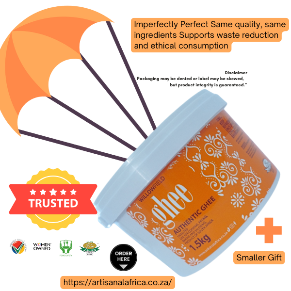 Willowfield Original Butter Ghee – Slightly Flawed, Fully Loved (1.5kg) Same rich flavor, same nourishing goodness—just a little rough around the edges. These limited units of Willowfield Original Butter Ghee come with minor packaging imperfections: a dented bucket, a skewed label, or a scuffed barcode. Inside? Our signature slow-simmered, golden clarified butter made from pure butterfat, crafted for high-heat cooking, baking, and traditional rituals.